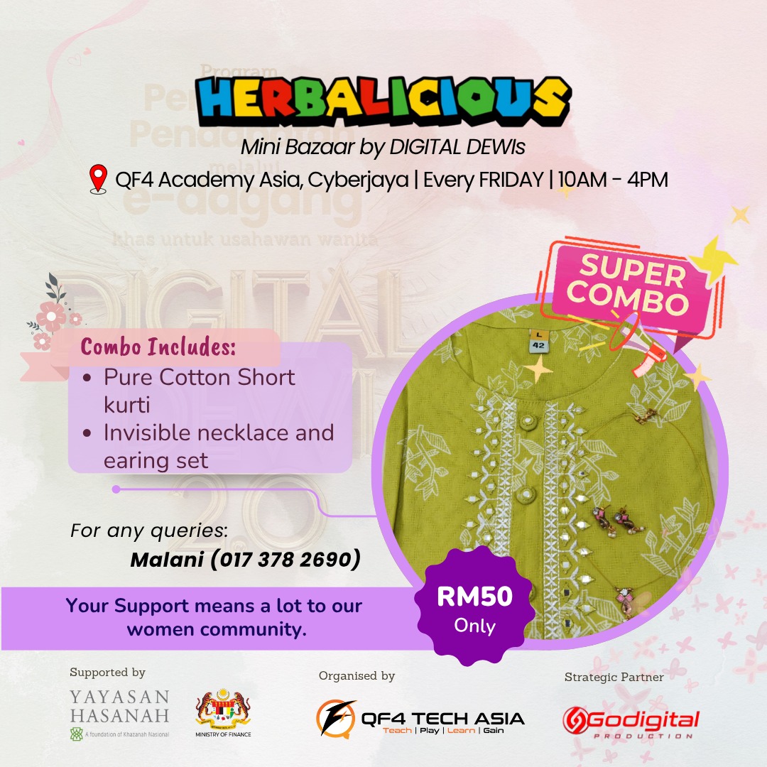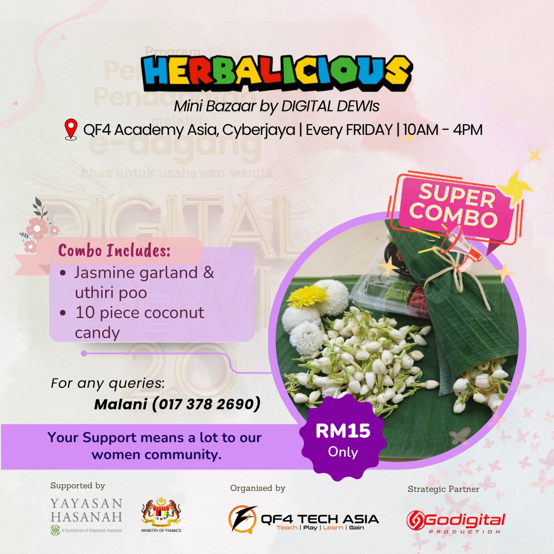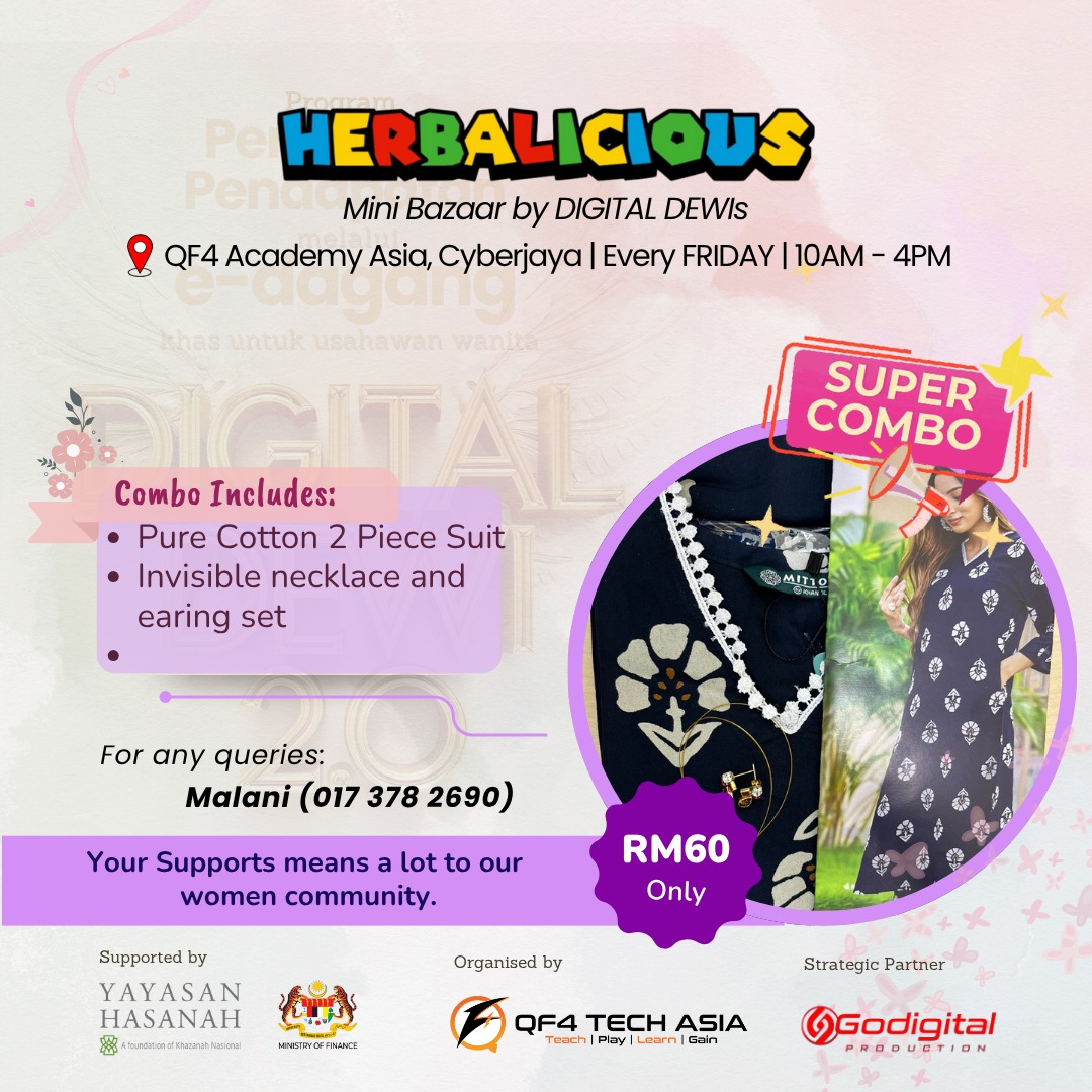 The Digital Dewi 2.0 program is organized by QF4 Tech Asia Sdn. Bhd., with the support of Yayasan Hasanah and the Ministry of Finance Malaysia & Godigital Production as media partner. This initiative empowers women to grow as digital-savvy entrepreneurs and now, they’re putting their skills into action!